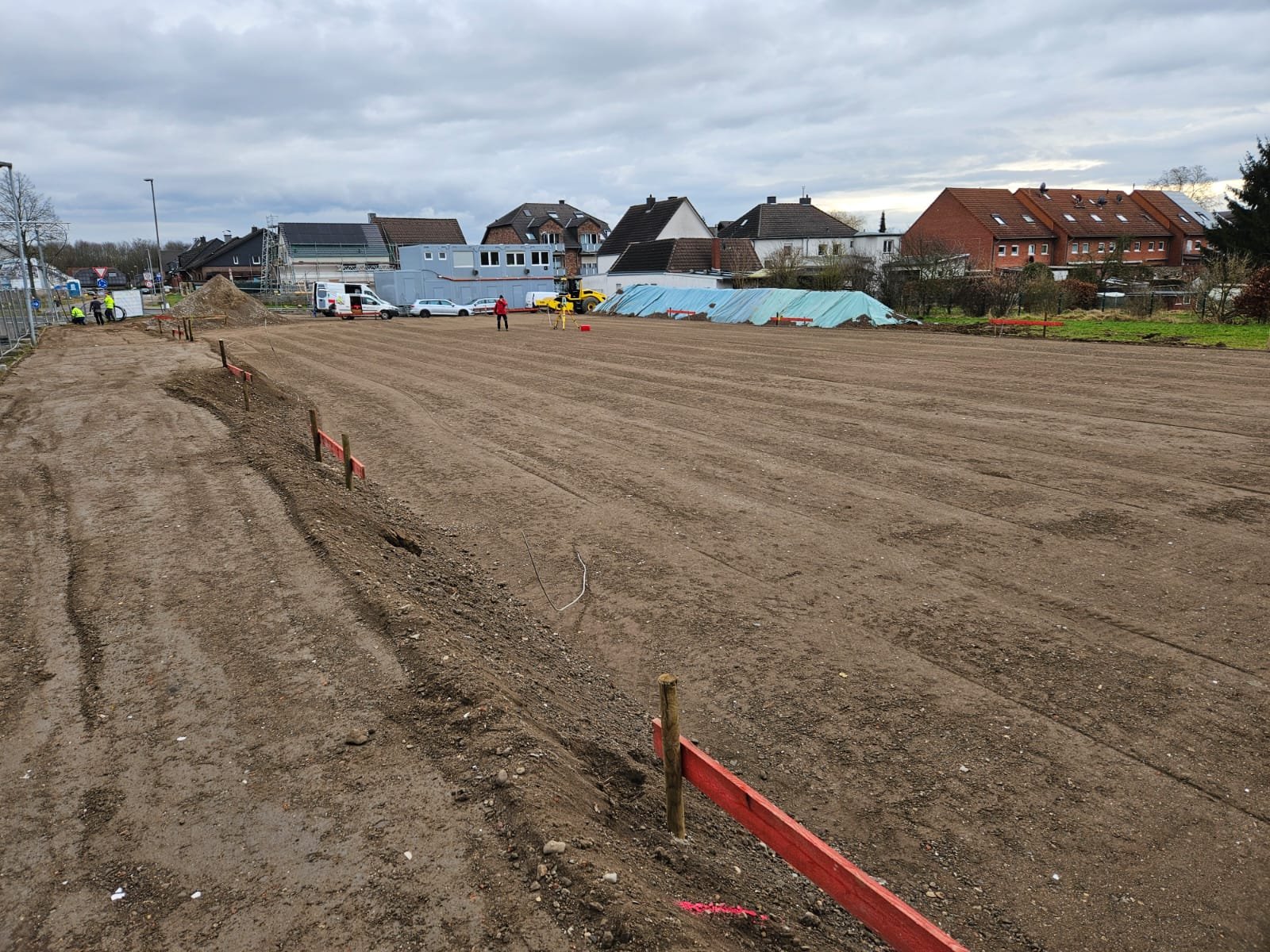 Heute ging es im Außendienst zu einer Achsabsteckung für den Neubau einer 6-gruppigen Kindertagesstätte in Bedburg. Bauherr ist hier die Stadt Bedburg und unser Auftraggeber die Fa. Kleusberg, welche wir schon bei einigen Projekten unterstützen durften.